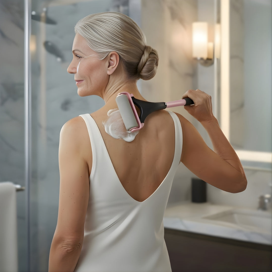 Rol de Easy Reach soepel over je rug, schouders en andere moeilijk bereikbare plekken. Zo krijg je een gelijkmatige verdeling zonder hulp van anderen.