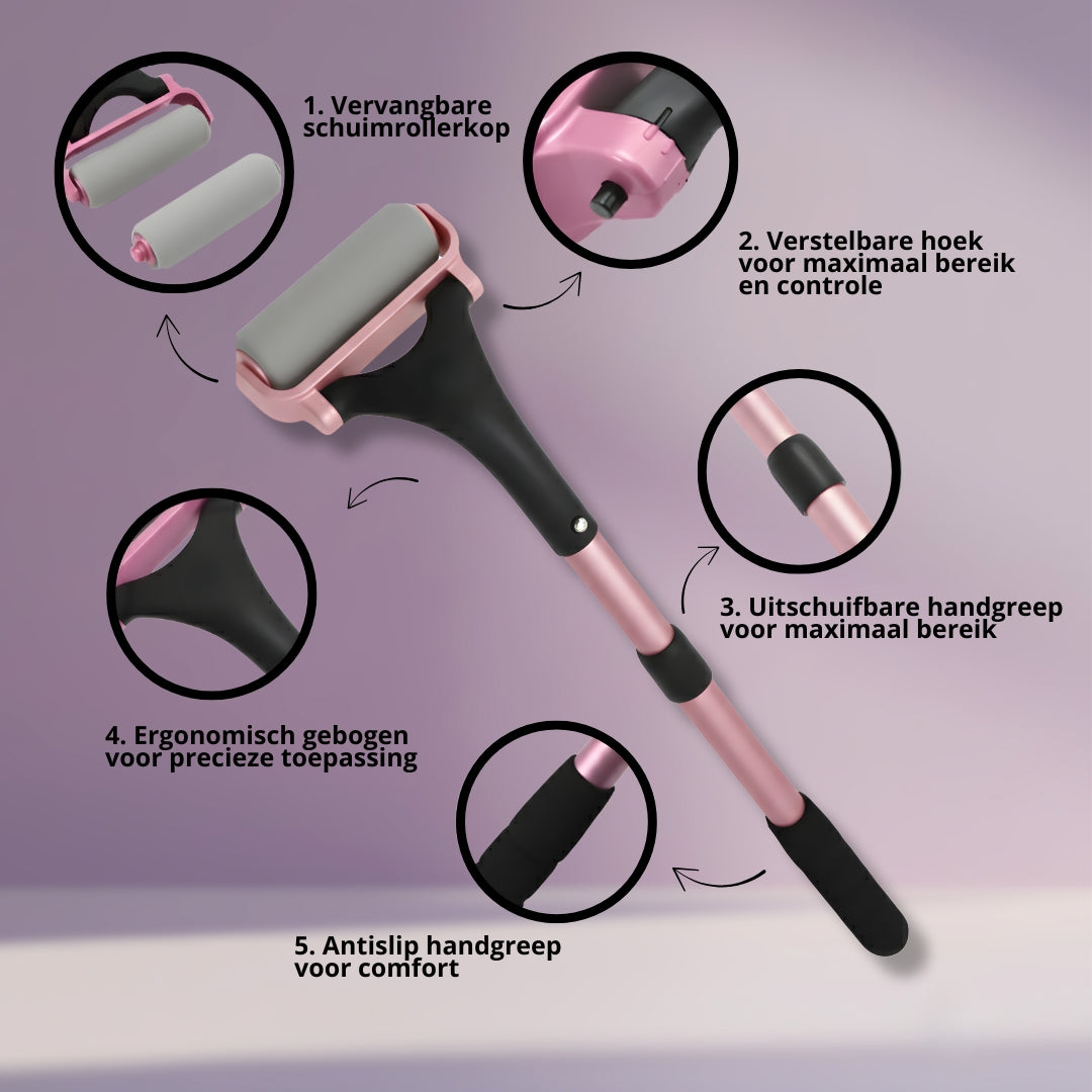 Je kunt de roller eenvoudig schoonmaken met warm water en een milde zeep. Laat hem daarna goed drogen. Zo blijft de roller hygiënisch en klaar voor hergebruik.